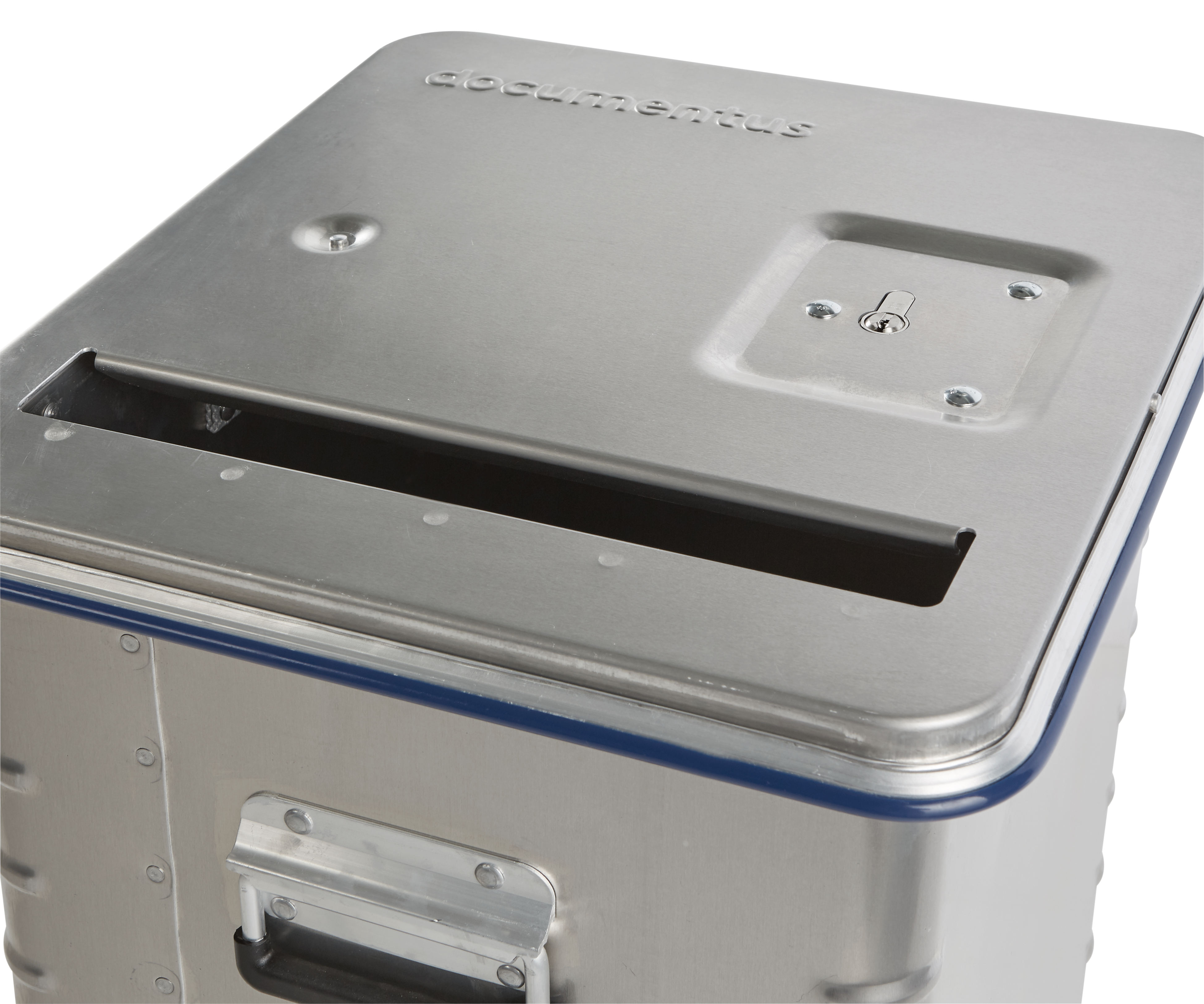 Eigenschaften: flexibel einsetzbar, mit Einwurfschlitz und Sicherheitsschloss.